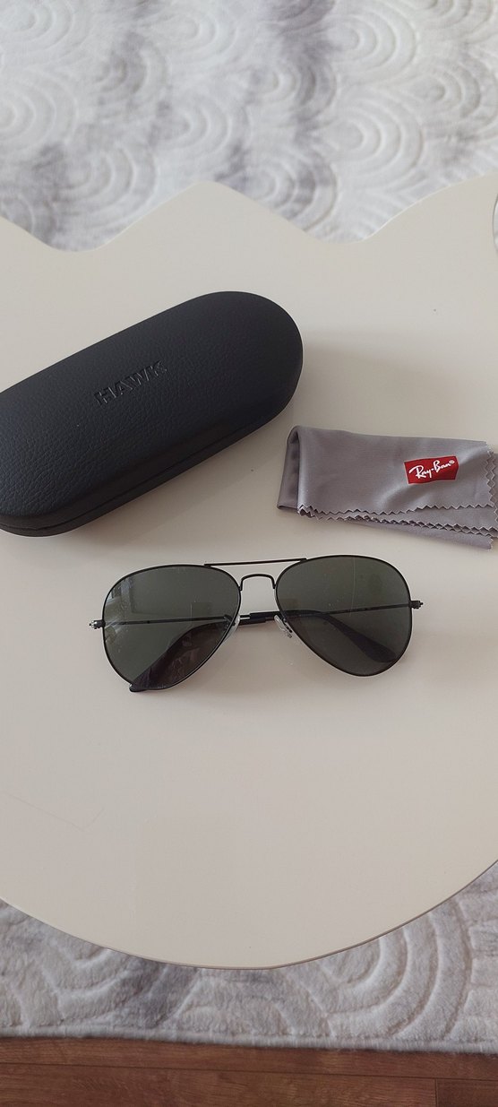 Ray-Ban siyah minimalist erkek güneş gözlüğü, sade tasarımlı, koruyucu kutu ve temizleme bezi ile birlikte. Sokak stili için uygun.