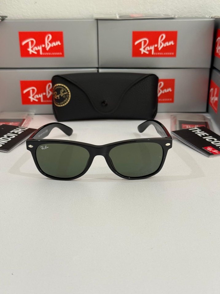 Ray-Ban siyah parlak klasik kadın güneş gözlüğü, trend sokak stiliyle. Koruyucu kılıf ve markalı kutu ile birlikte. ️