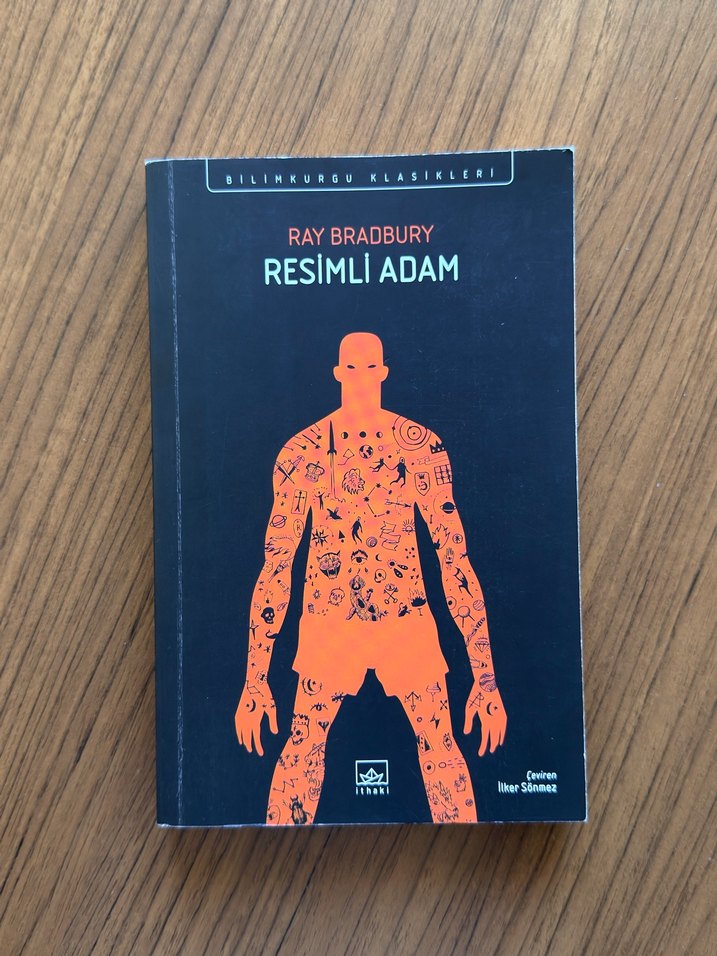 Ray Bradbury'nin "Resimli Adam" romanı, üzerinde çizimli insan figürü bulunan kapakla, bilimkurgu klasikleri serisindendir. Çevirmen: İhsan Sönmez. Kitap bir defa okunmuştur çok iyi durumdadır
