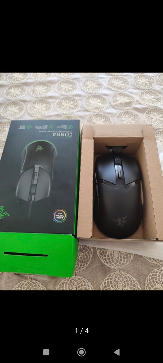 Siyah Razer Cobra kablolu oyuncu mouse'u, hassas kontrol ve ergonomik tasarım sunar. Özelleştirilebilir tuşlar ve kaygan kaydırma tekerleği bulunur.
