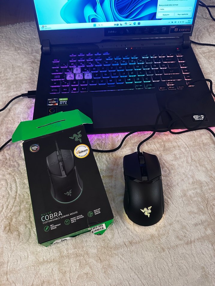 Razer Cobra siyah oyuncu mouse, koyu ve canlı renklere sahip olup hassas ve konforlu kullanım sunar. 'COBRA' optik sensör içerir.Sorunsuz temiz kutuludur.