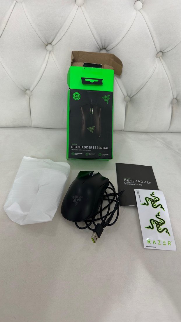 Razer DeathAdder Essential, koyu yeşil renkli kablolu oyuncu mouse'u, ergonomik tasarımı ve hassas kontrolüyle dikkat çekiyor. Orijinal kutu ve aksesuarlar dahil. Sıfırdır.