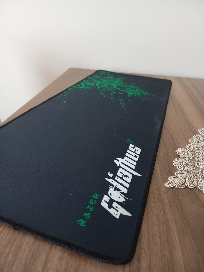 Razer Goliathus mouse pad, siyah zemin ve yeşil detaylarla hassas kontrol ve konfor sunar. ️