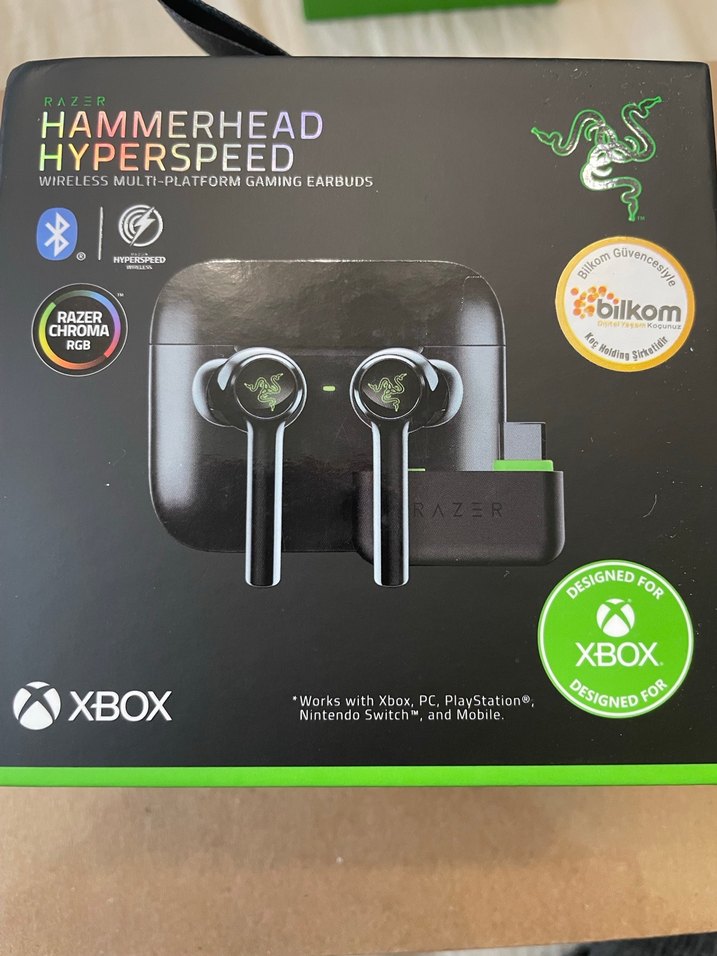 Razer Hammerhead Hyperspeed kablosuz gaming kulaklık, Xbox, PC, PlayStation, Nintendo Switch ve mobil uyumludur. Bluetooth ve Razer Chroma RGB ışıklandırmaya sahiptir.