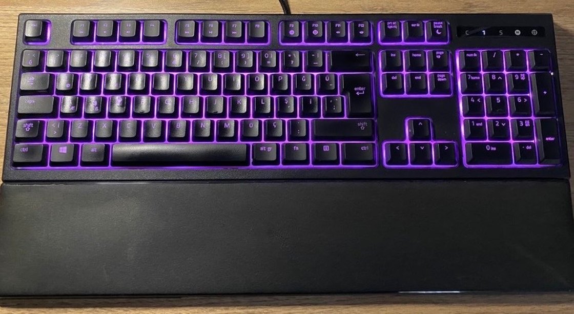Razer Ornata V1 model. S-D tuşları aşındı fotoğraflara ekledim. Bilek dayanağının derisi soyuldu ama işlevini görüyor.
