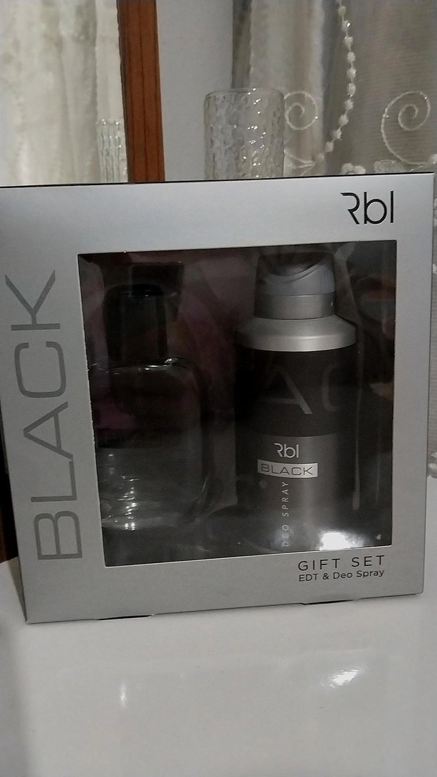Rbl Black hediye seti, EDT parfüm ve deodorant sprey içerir. Koyu renkli, iş ve goth tarzına uygun.