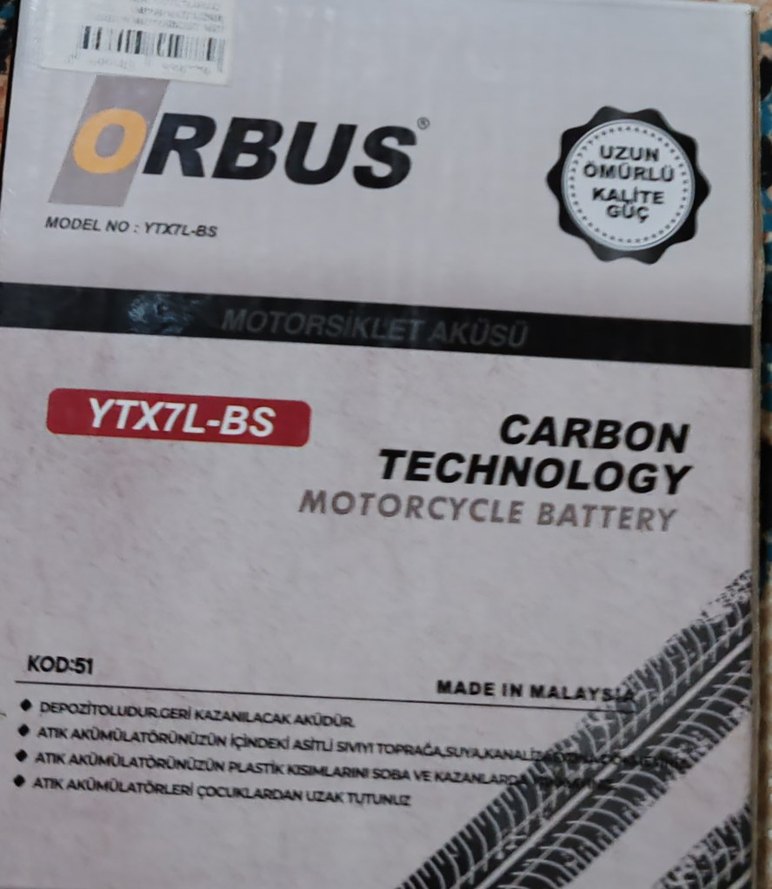 RBUS YTX7L-BS motosiklet aküsü karbon teknolojisiyle uzun ömürlü ve kaliteli güç sağlar. Malezya üretimi. ⚡