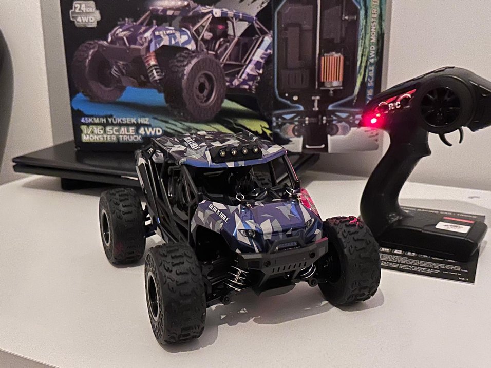 1:16 Ölçek . 4X4 .Maksimum stock hali ile 45 Km/H hızı geçebilmektedir.Su geçirmez Esc ile her alanda kullanım. Üst kalite malzemeden yapılmış esnek şasesi ve alaşımlı şaft kolu ile yüksek hızlarda bile dengeli gidebilmektedir. Kumandadan Trim ayarlı hassas servo ile dengeli dönüşler yapmaktadır. 7.4V 1200 Mha yüksek kapasiteli pil. Kayma yapmayan kauçuk özel lastikler ile sert zemine çok iyi tutunmaktadır. Özel esnek katlanma yapmayan kep. Güçlü led far ile gece rahatlıkla kullanım. 100 metre kumanda çekim mesafesi. Soğutmalı 380 brushed özel güçlü motor. Pil şarj kablosu, 1200 MHA 7.4 V pil, bijon alyanı , yedek şaft kolu ve kullanım kılavuzu ile beraber gelmektedir.