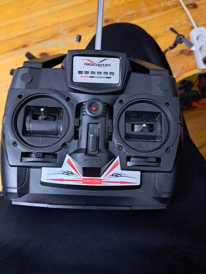 RC helikopter kumandası satılıktır. Üzerinde Helicapten ibaresi bulunmaktadır Açılıyor, güç ışığı yanıyor Tuşlar ve joystickler sağlam görünümdedir Arka pil kapağı eksiktir (bantla kullanılabilir) Hangi modelle uyumlu olduğu bilinmiyor Parça, yedek veya uyumlu helikopteri olanlar için uygundur. Göründüğü şekilde teslim edilir.
