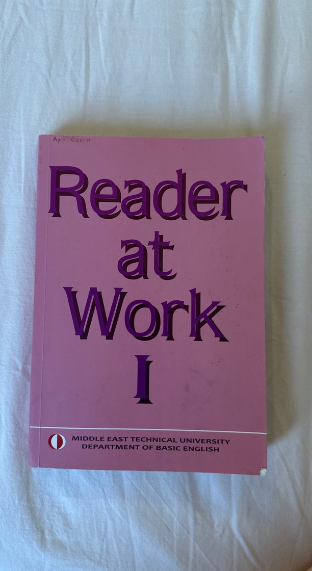 Reader at Work I, Orta Doğu Teknik Üniversitesi Temel İngilizce Bölümü tarafından hazırlanmış bir kitaptır. İngilizce öğrenimini destekler. Ayırdığım yerden itibaren yapılmamıştır. Yarısından fazlası yapılı.