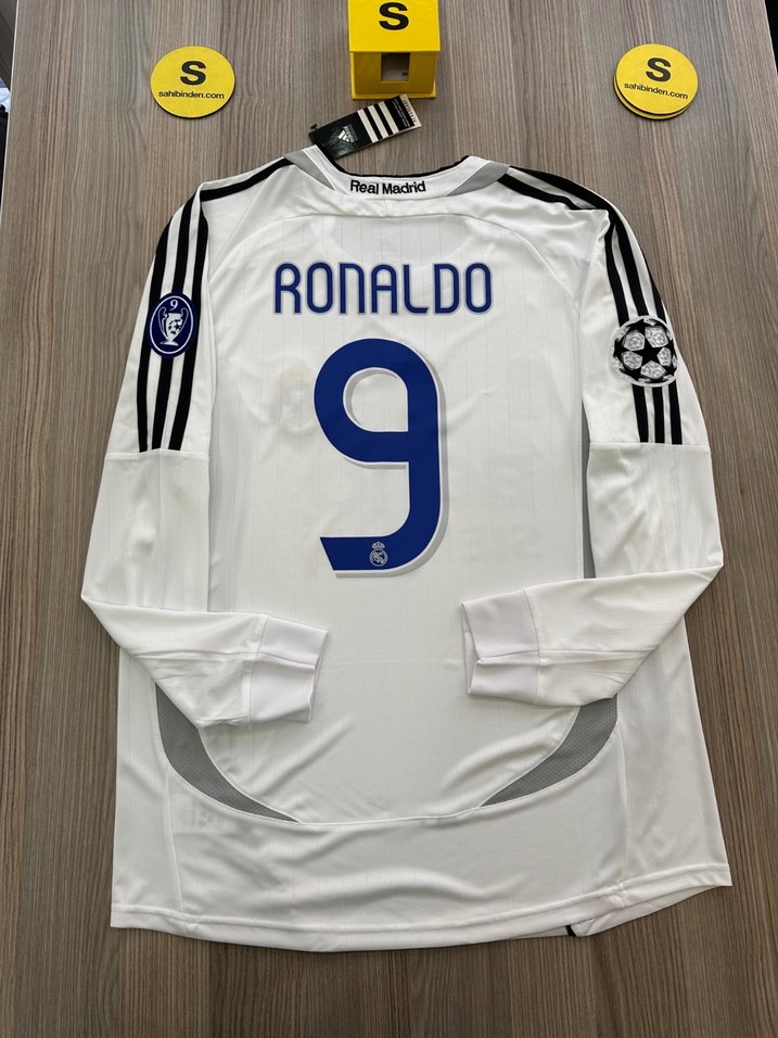 Real Madrid 2006-2007 İç saha “Ronaldo Nazario” forması. sıfır ve etiketlidir. Ürünün kolunda kabartmalı Şampiyonlar Ligi Patch mevcuttur. Sıfır Adidas poşetinde gönderim yapılacaktır. Müthiş bir koleksiyon ürünüdür. Uzun Kol S M L XL XXL