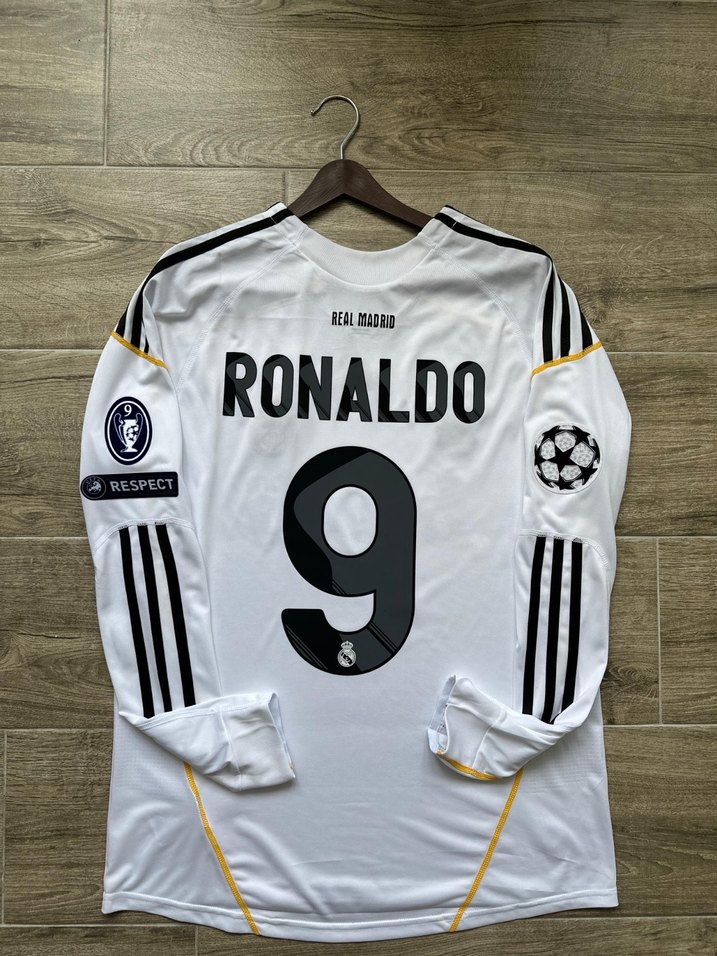 Real Madrid 2009-2010 İç Saha “Cristiano Ronaldo” forması. Manchester United’da geçirdiği harika ve efsanevi yıllardan sonra Real Madrid’e transfer olan Ronaldo, 7 numaralı formayı Raul’ün giymesinden sonra kariyerinde ilk defa “9” numaralı formayı giymiştir. Ürün Uzun Kolludur. Sıfır ve etiketlidir. Ürünün kollarında kabartmalı Şampiyonlar Ligi Patch seti mevcuttur. Sıfır poşetinde gönderim yapılacaktır. Harika bir koleksiyon ürünüdür. S - M - L - XL - XXL Bedenleri mevcuttur.