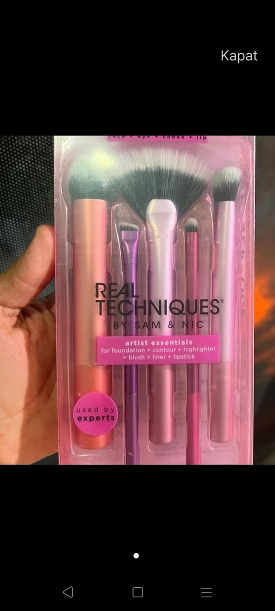 Real Techniques'in açık pembe makyaj fırçaları, fondöten, kontür, aydınlatıcı, allık, eyeliner ve ruj uygulamaları için uygundur. Uzmanlar tarafından kullanılır.