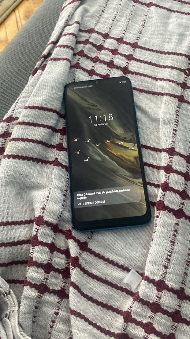 Lacivert renkli Android akıllı telefon, koyu temalı ekran ve net saat ile bildirim bilgilerine sahiptir. Şık tasarımlı ve canlı renklerde ekran sunar.