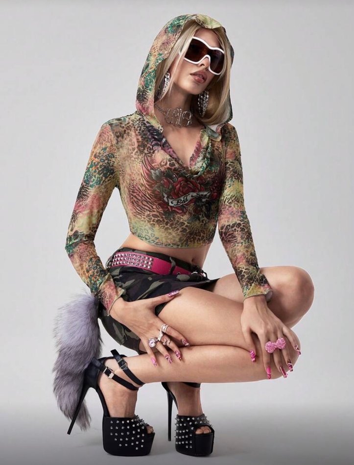 Rebel Soul La Saade Blouse-Y2K Transparan Mesh Kapüşon Crop Bluz