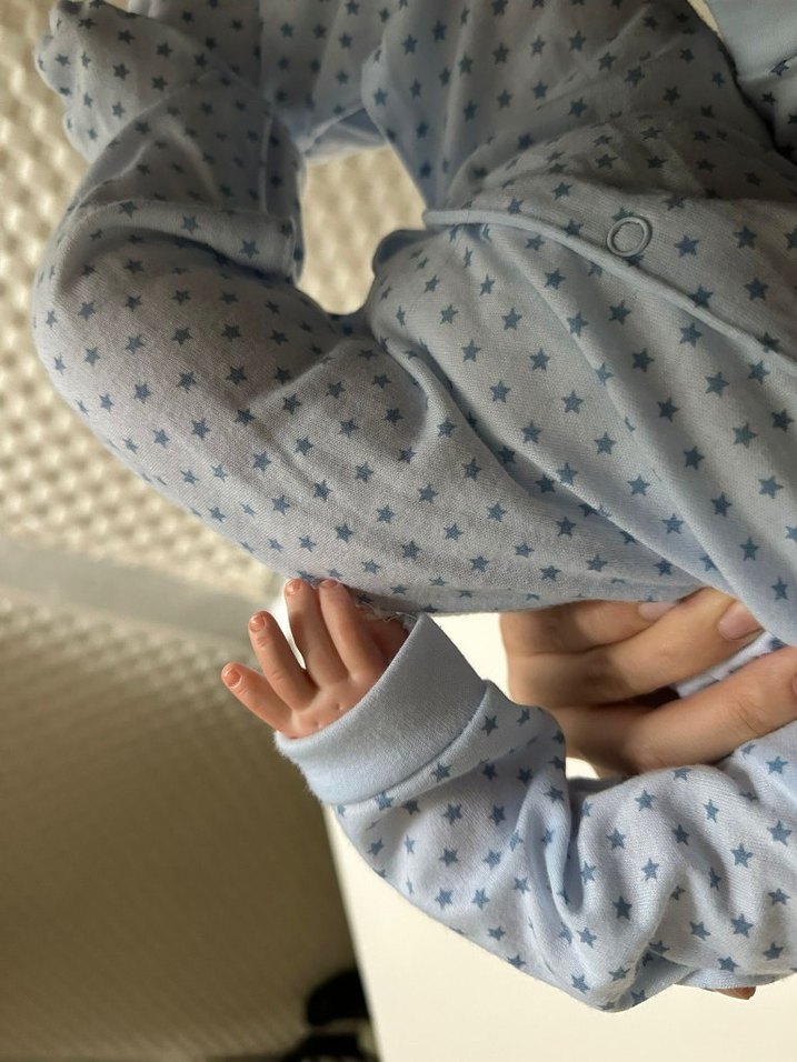 Pastel mavi desenli kıyafetli, gerçekçi yüz ifadelerine sahip oyuncak bebek Lütfen almadan önce varmı diye sorunuz kata gori8 yaş olmadığında kabul etmiyor uygulama oyüzden yas yazdım REBORN BEBEK