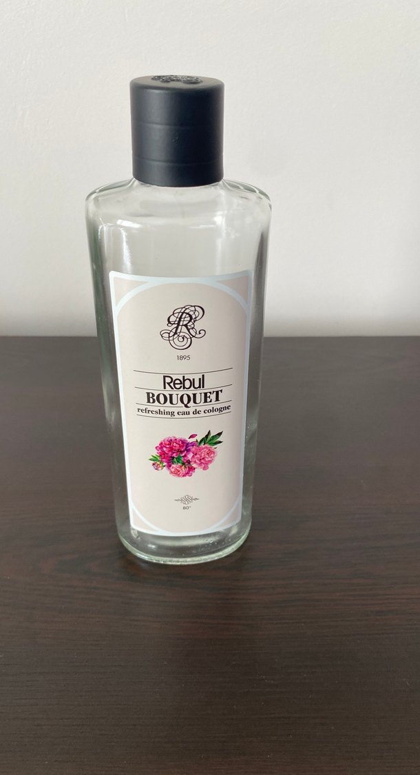 Rebul Bouquet marka boş kolonya şişesi. Doldurulabilir şekilde kapaklı, hiçbir sorunu yoktur. 270 ml. dir.
