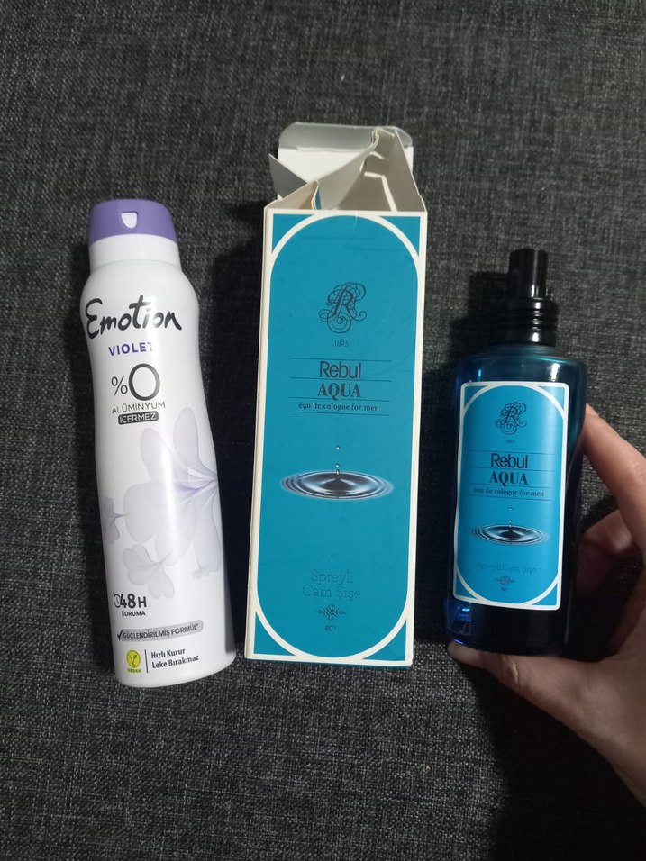 Rebul Aqua ile Emotion Violet erkek kadın set parfümlü kolonya ile alüminyumsuz menekşe deodorant yeni birlikte fiyat. Farklı çeşitleri için sayfama bakabilirsiniz.