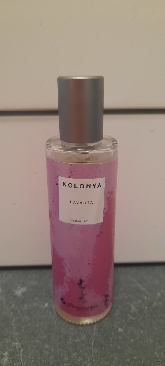 Rebul marka cam şişede spreyli 50 ml şişede, lavanta kokulu kolonya bir defa kullanılmıştır, kutusu mevcut değil.