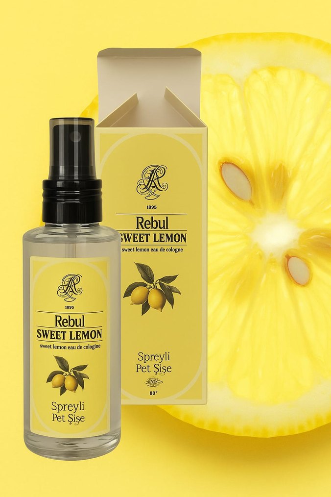 Rebul Sweet Lemon kadın kolonyası, 80° spreyli pet şişede, taze ve tatlı limon kokusuyla sunulur. Kolay kullanımlı ambalajda.