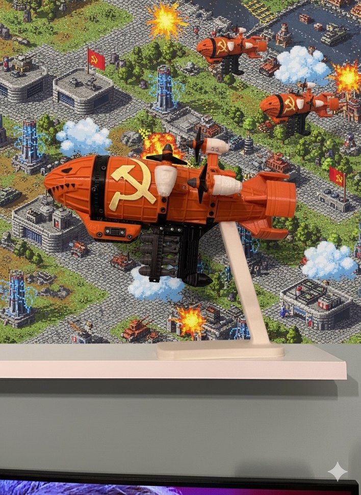Efsanevi strateji oyunu Command & Conquer: Red Alert 2’nin en güçlü ve ikonik hava birimi olan Kirov Airship şimdi koleksiyonunuzun bir parçası olabilir. Yüksek kaliteli 3D baskı (PLA+) ve (ABS) özenli el işçiliği ile yapılmıştır. 31 cm uzunluğunda toplam yükseklik 28 cm Şipariş için ilan açtırınız bilgi için 538 438 6113