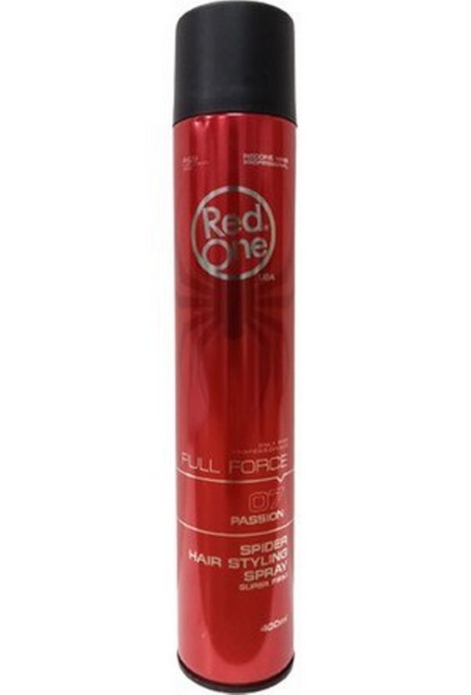 Red One Full Force saç spreyi, güçlü tutuş sağlar. 400ml kırmızı kutuda, siyah kapaklıdır. ♂️