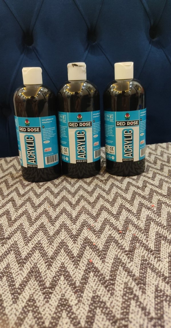Red Rose marka siyah boya seti, farklı resim çalışmalarına uygundur. Şişelerde beyaz kapaklar bulunur.