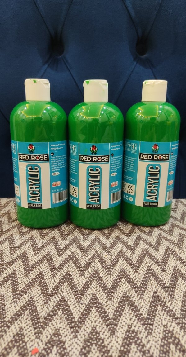 Red Rose marka, çeşitli boyama projeleri için uygun yeşil akrilik boya seti.