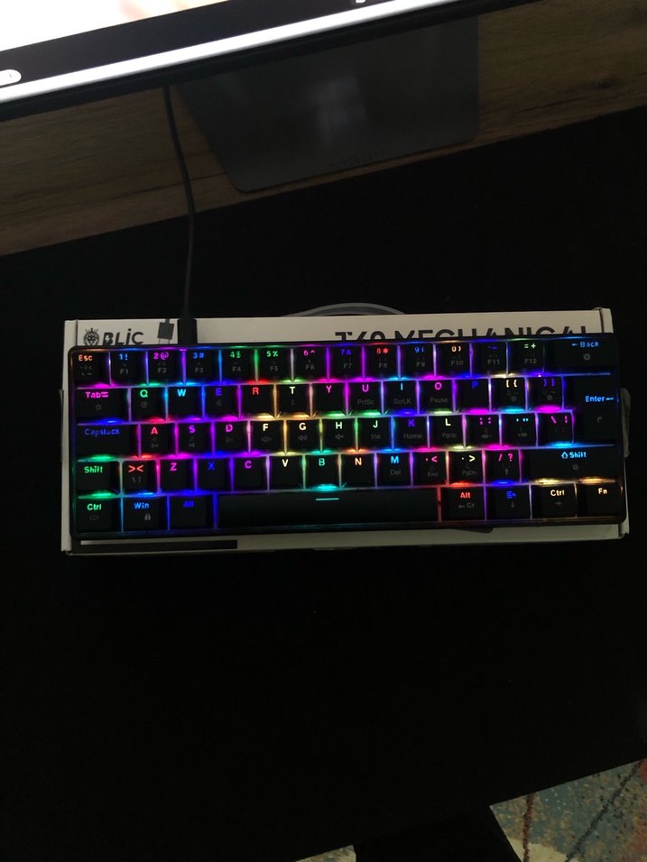 Çok renkli ışıklandırmaya sahip mekanik gaming klavye, kompakt tasarımıyla oyuncular için uygun.