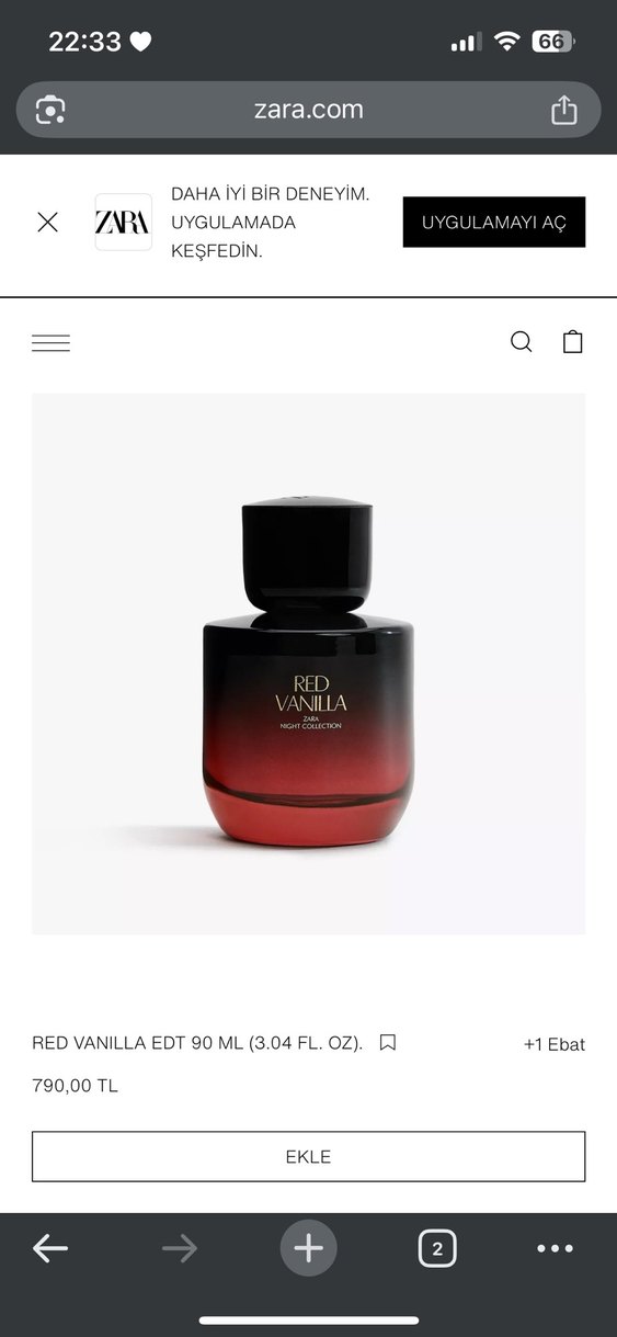Red Vanilla kadın parfümü, 90 ml hacminde. Vanilya notaları içeren, kırmızı ve siyah şişede sunuluyor. Fiyatı 790 TL. Kokulardan hızlı sıkıldıgım için satıyorum içerisinde 50,60ml vardır