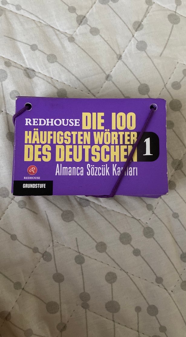 Redhouse Almanca en çok kullanılan 100 kelime kartları. Temel seviyede Almanca kelime öğrenimi için kompakt ve kullanışlı tasarım. Trendyolda fiyatı 114 tl
