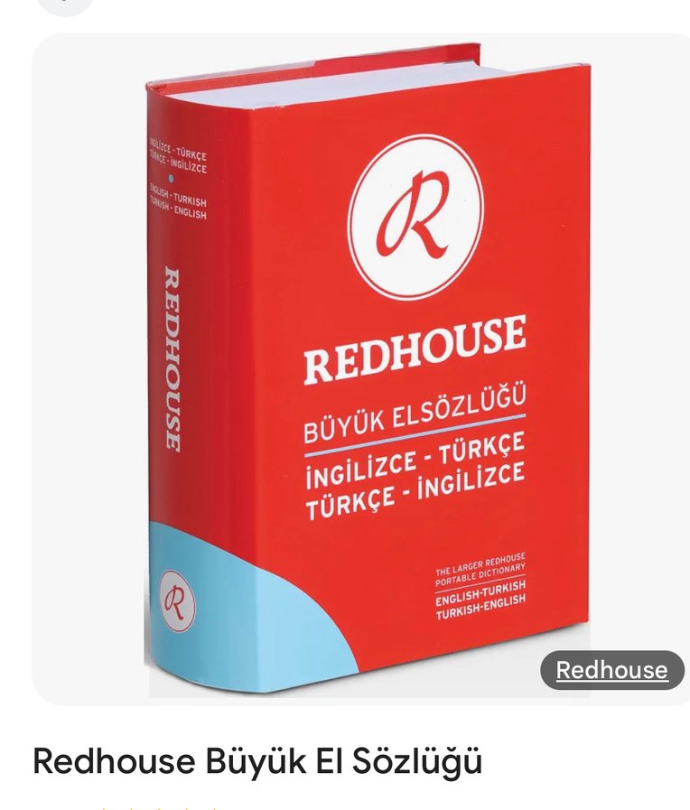 Redhouse Büyük El Sözlüğü, İngilizce-Türkçe ve Türkçe-İngilizce çift dilli, taşınabilir kullanışlı bir sözlüktür. Kullanılmamıştır. Temiz bir sözlük