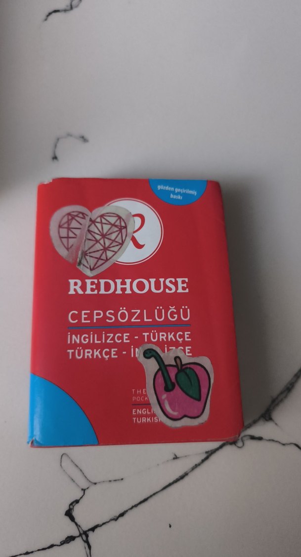 Redhouse cep sözlüğü, İngilizce-Türkçe ve Türkçe-İngilizce çeviriler sunar, parlak kapaklıdır.