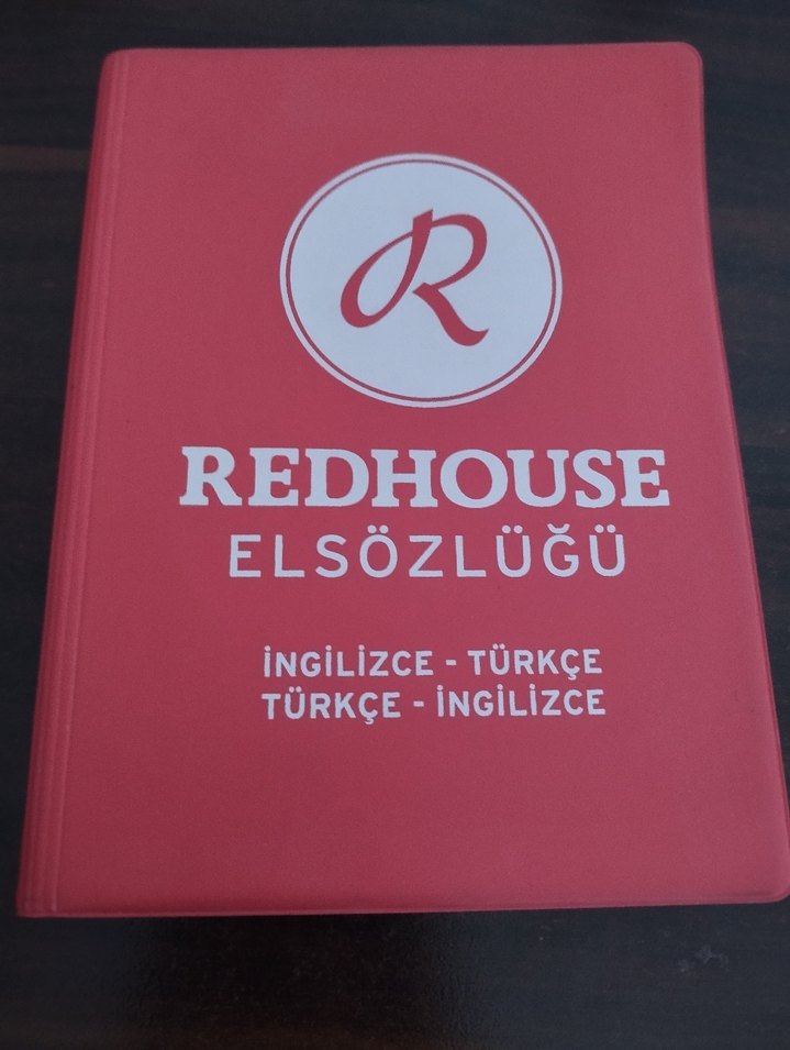 Redhouse markalı İngilizce-Türkçe ve Türkçe-İngilizce çeviri içeren kırmızı kapaklı sözlük.