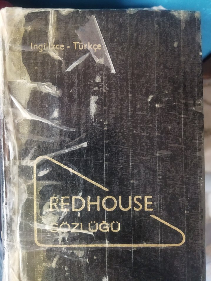 Aşınmış kapaklı Redhouse İngilizce-Türkçe sözlük, dil referansı için uygundur.