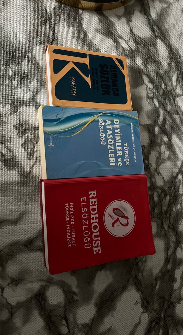 İki adet Redhouse İngilizce-Türkçe sözlük ve bir adet Türkçe deyim ve atasözleri kitabı içeren set. Sözlükler dil referansı için kullanışlıdır. 3 alana biri bedava.