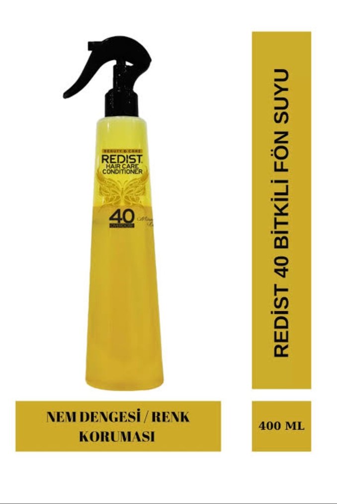 Redist 40 bitkili fön suyu, nem dengesi ve renk koruması sağlar. 400 ml şişede sunulur.