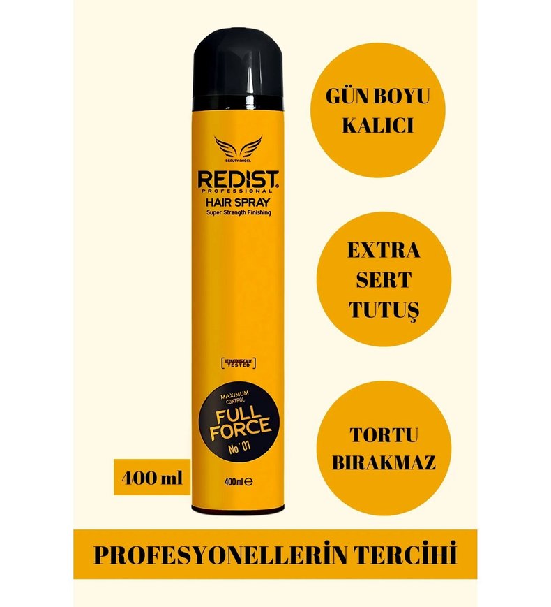 Redist Profesyonel saç spreyi, gün boyu kalıcı ekstra sert tutuş sağlar ve tortu bırakmaz. Profesyonellerin tercihi, 400 ml. ♂️