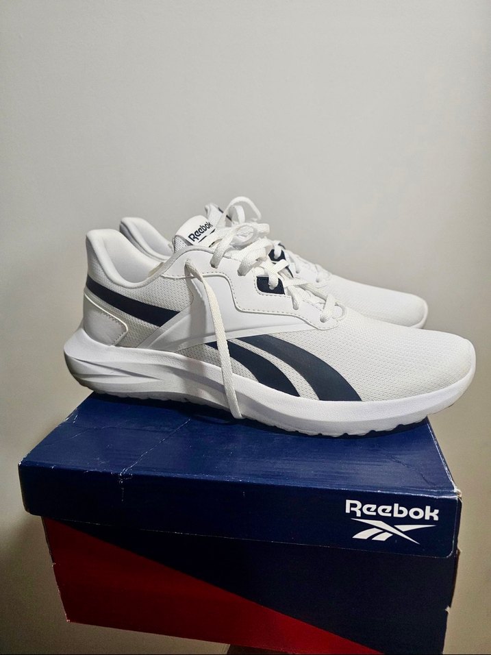 Reebok markalı, beyaz ve gri renkli, baskılı detaylı ve cırt cırtlı erkek spor ayakkabısı, trend sokak tarzı için uygun. ♂️