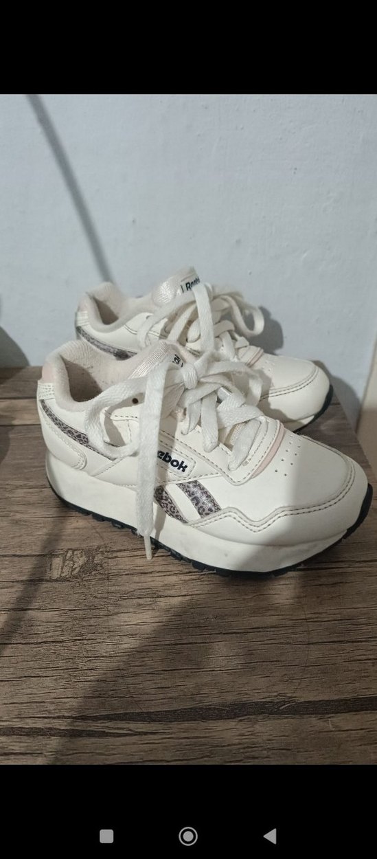 Reebok beyaz zebra desenli, bağcıklı, platform topuklu spor ayakkabılar. Kauçuk tabanlı, sportif sokak stiline uygun.