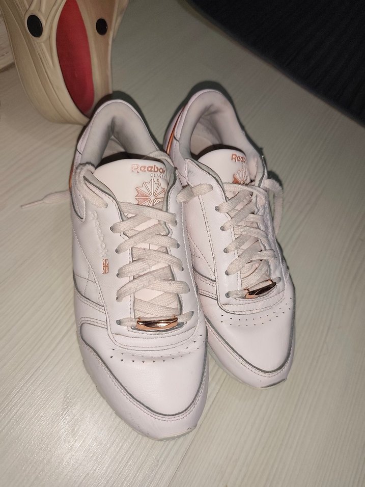 Reebok Classic Kadın Spor Ayakkabı – Orijinal – Temiz ✅ Marka: Reebok ✅ Model: Classic Leather (Rose Gold detaylı özel seri) ✅ Numara: (38) ✅ Renk: Beyaz – Rose Gold metal uç detaylı ✅ Durum: Az kullanılmış, temiz. Yanlarda, tabanda ve dikişlerde herhangi bir sökük veya deformasyon yok. Yalnızca birkaç defa giyildi, iç kısımda görülen kararma izleri uzun süre kullanılmayıp ayakkabılıkta beklediği için olmuştur (fotoğraflarda görebilirsiniz). Orjinal Reebook'ların sıfır fiyatları oldukça pahalıdır (Google'dan bakabilirsiniz, 4-5 bin ₺) Özel Seri: Rose gold metal detaylarıyla klasik modelden ayrılır. Şık ve rahat bir günlük ayakkabıdır. Kutusu yok, ama temiz paketlenerek gönderilecektir. Fiyatta pazarlık payı vardır, teklif gönderiniz). Elden teslim yok, yalnızca kargo.