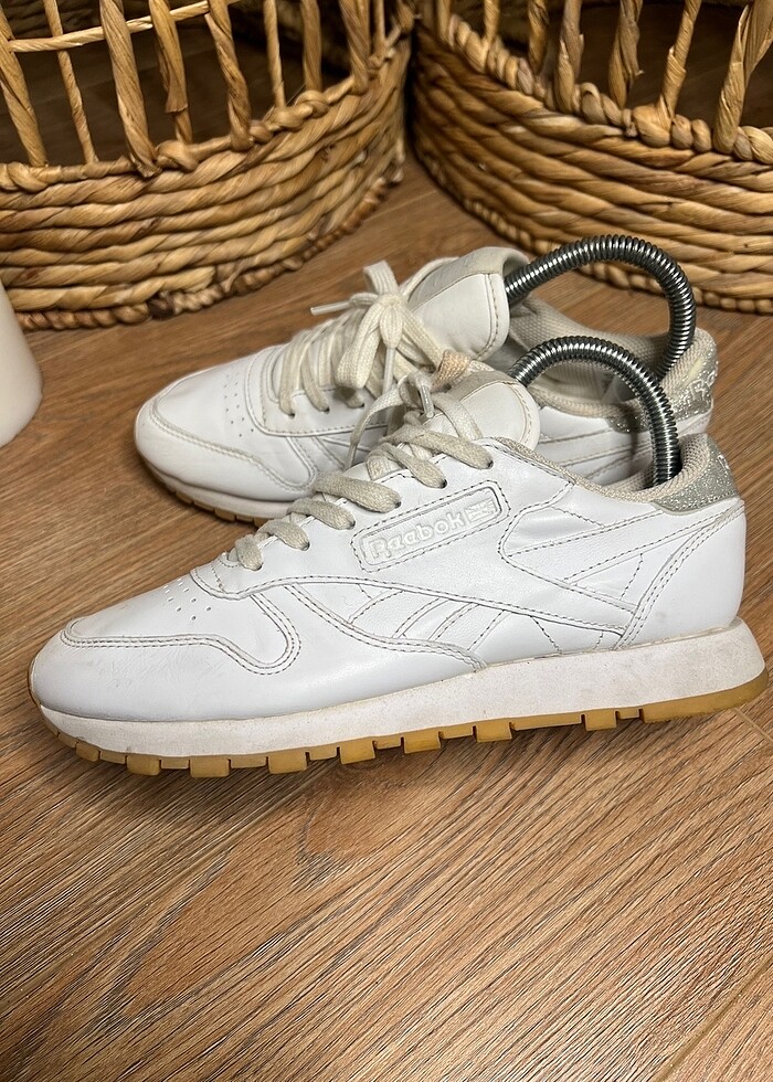 #reebok klasik leather arkası simli sneakers..simli kısımda çok az dökülme olmuş,belli bile olmuyor ama belirtmek istedim..onun dışında hiç bir sıkıntısı yok,zaten sayılı kullanıldı.