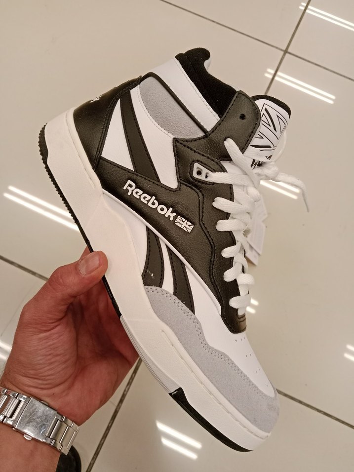Reebok erkek spor ayakkabısı, beyaz ve gri baskılı, cırt cırtlı ve kauçuk tabanlı, sportif sokak stili için uygundur.
