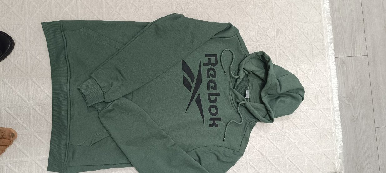 Yeşil Reebok sweatshirt, yuvarlak yaka, uzun kollu ve bol kesim. Baskılı desen ve cırt cırt detaylarıyla rahat ve şık. Yumuşak kumaş spor ve günlük kullanıma uygun. ♂️