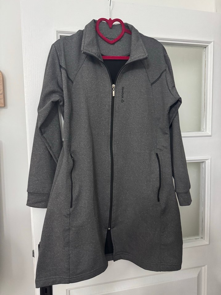 Gri renkte, fermuarlı ön ve yan cepli, uzun kollu, bol kesim ceketi. Yumuşak kumaştan midi boyda, rahat sokak stili için uygundur. XL beden sıcak tutuyor kaliteli orjinal ürün