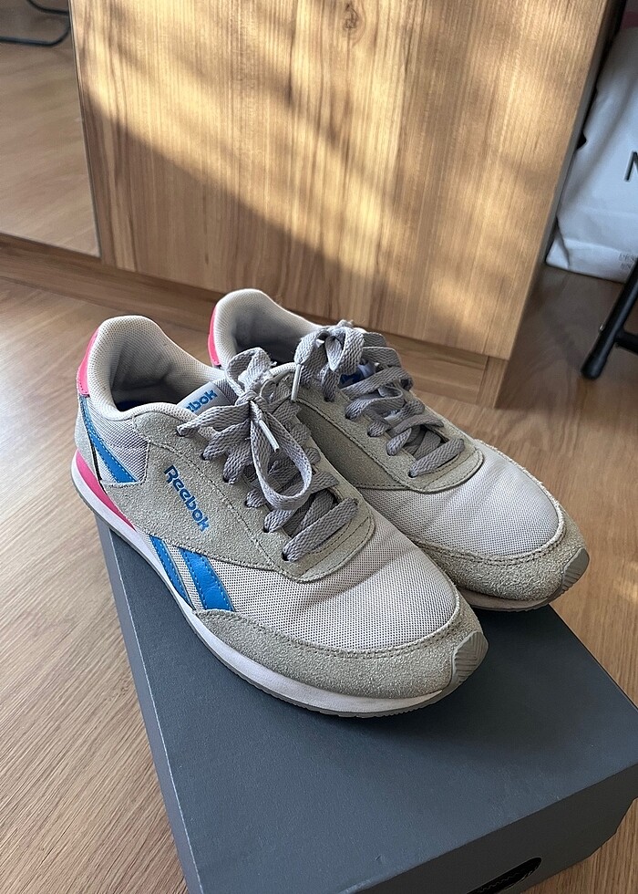 Kullanıma bağlı önünde kat izleri ve tabanın topuk kısmında yıpranma var. 37.5 giyenlere de olacaktır.