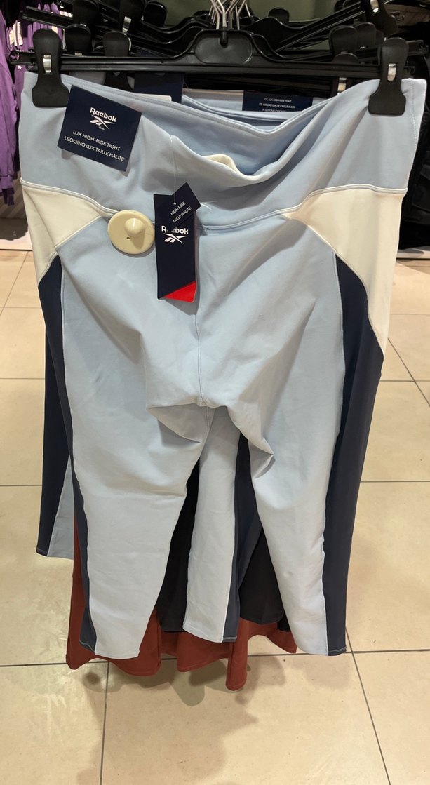 Reebok marka, mavi ve gri renklerde, velcro detaylı, sentetik kumaştan yapılmış, normal boyda, spor tarzı taytı. ♀️