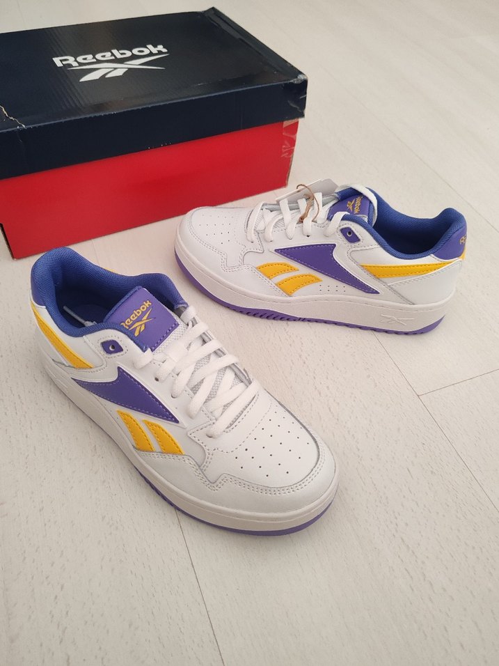 Reebok'in renkli baskılı ve platform topuklu spor ayakkabısı, rahat kapanışıyla sokak stili ve spor için uygun.