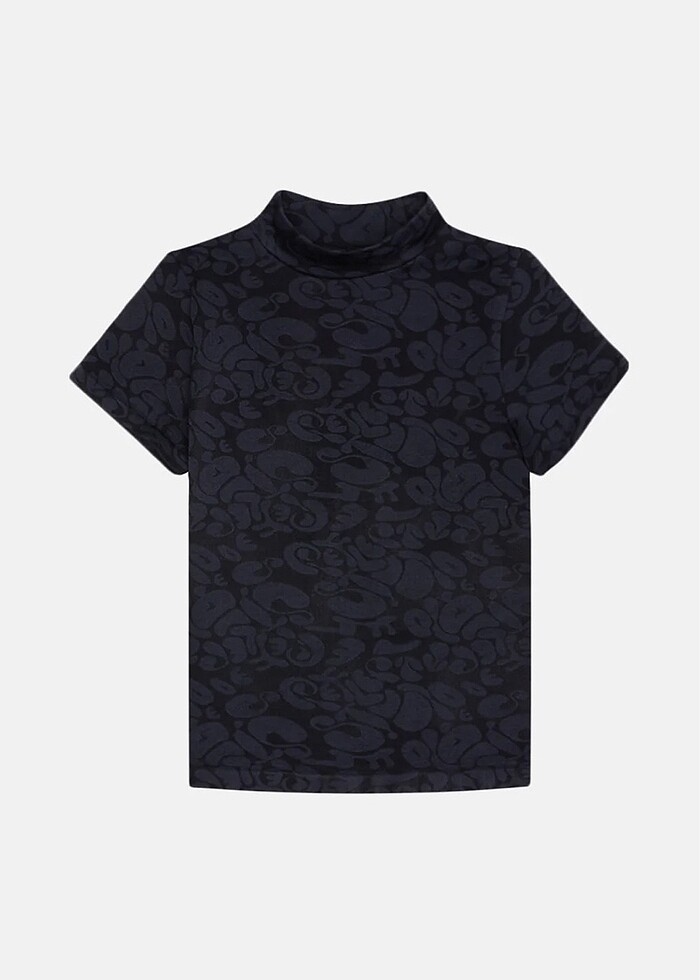 Slim-fit, esnek kumaş, jakar desenli kısakollu üst. FSC sertifikalı karton etiket. Türkiye’de üretildi. Makinede 30°C’de, benzer renklerle, tersten yıkayın ve tersten ütüleyin. Ağartıcı kullanılmaz, tambur kurutma ve kuru temizleme yapılmaz.