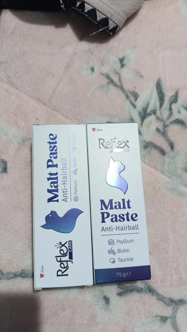 Reflex Malt Pasta, tüy topaklanmasını önlemeye yardımcı olur. İçeriğinde psyllium, biotin ve taurin bulunur. 75g ambalajda sunulur. Hiç kullanılmamıştır skt yakın değildir.
